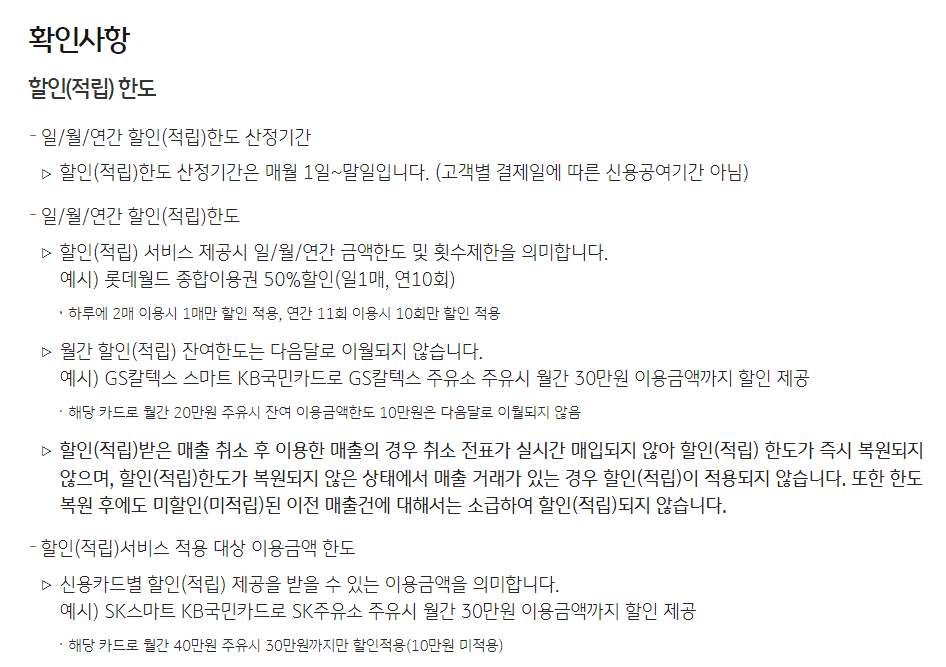 할인 한도에 관련된 내용들이 자세하게 설명되어져 있구요