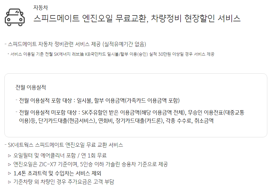 주유비뿐만 아니라 차량정비 혜택도 받아 볼 수 있구요