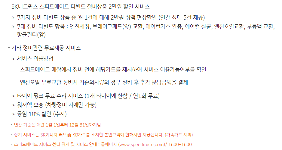 스피드메이트 자동차 정비관련 혜택은