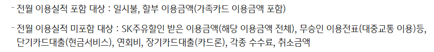 대부분 할부 이용건은 이용실적에서 제외가 되는데